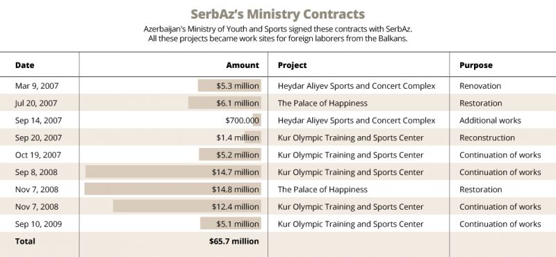 OCCRP araşdırmaçıları əcnəbilər vətənlərinə qaytarıldıqdan sonra Azərbaycanın "Creacon Construction" şirkətinin "SerbAz"-dan tikinti işlərini aldığını müəyyən ediblər.