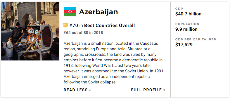 Azərbaycan dünyanın 80 ən yaxşı ölkəsi reytinqində