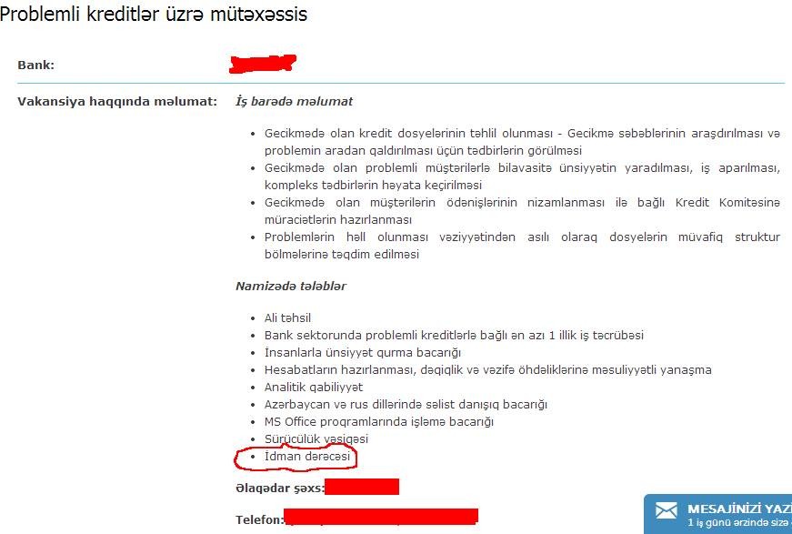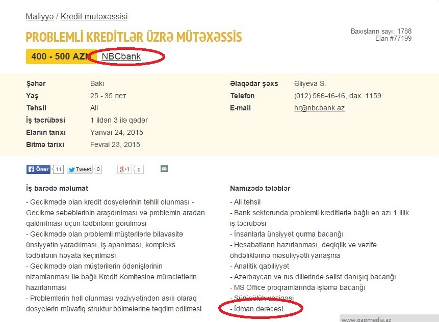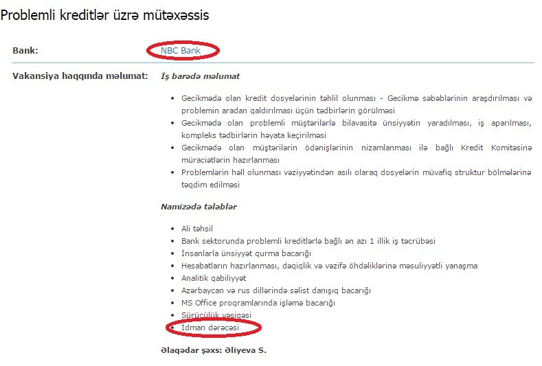 Axar.az-ın əməkdaşının apardığı araşdırma zamanı məlum olub ki, “NBC bank” işə xüsusi idman dərəcəsi olan işçilər götürmək istəyir.