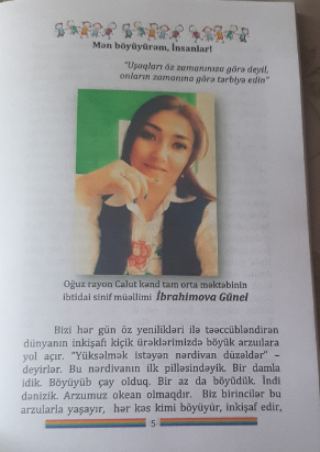 "Mən böyüyürəm, insanlar" adlı həmin kitabçada İbrahimovanın dərs dediyi 1-ci sinif şagirdlərinin hekayələri topalanıb.