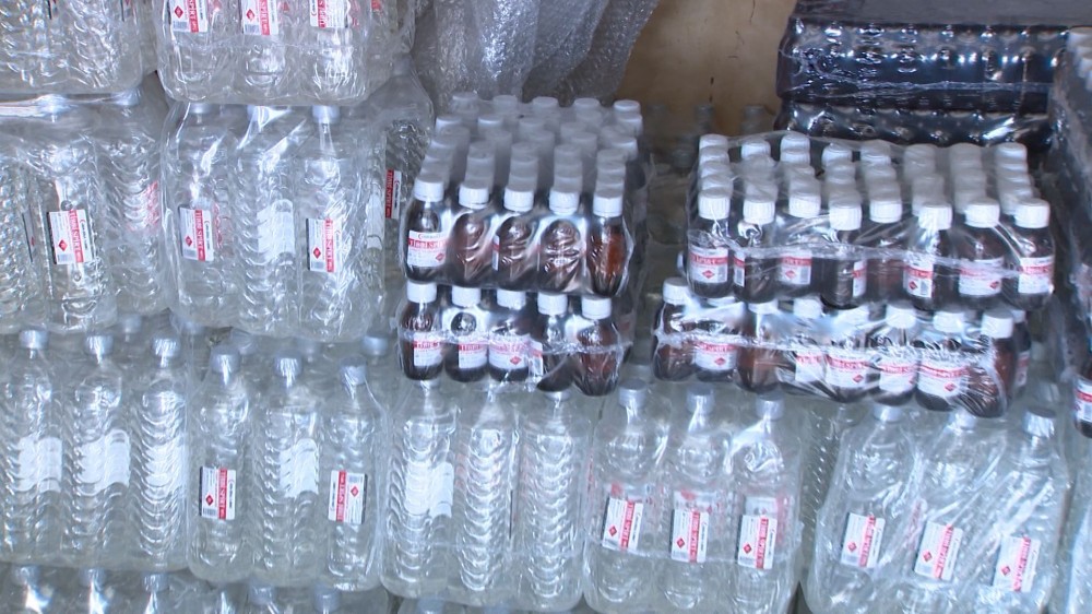 Polis əməkdaşları tərəfindən sexə baxış zamanı eyni üsulla hazırlanmış 672 ədəd 1 litrlik və 420 ədəd 100 ml-lik qablarda hazır spirt, qablaşdırma üçün nəzərdə tutulmuş 5 ton spirt nümunələri və digər maddi sübutlar aşkar olunaraq götürülüb.