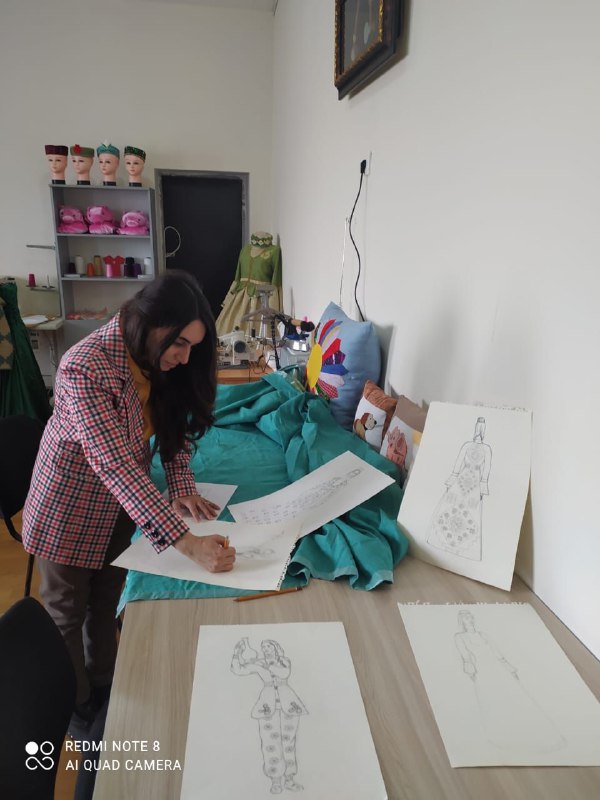 Onların iş otağında belə orijinal, maraqlı əl işləri çoxdur. Bəzən milli və müasir geyimləri sintez etməyə çalışırlar, bəzən Azərbaycana dair naxışları, qədim rəsmləri, detalları geyimlərdə qorumağa, göstərməyə can atırlar. Məsələn, müasir dəbdə tikilmiş ağ kostyumun qofta və pencəyinə min illər öncə Qobustan qayalarına həkk edilmiş rəsmlər işlənib.