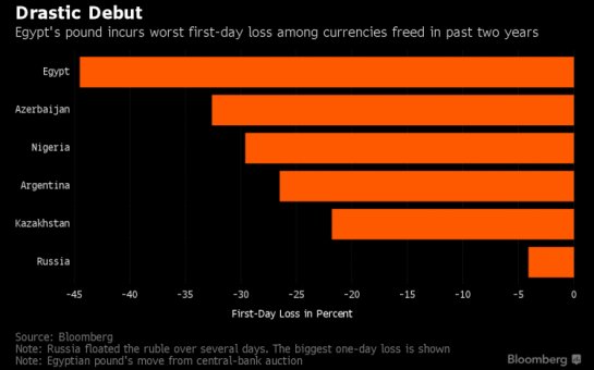 Yerli tənzimləyicinin müvafiq qərarı ilə "üzməyə" buraxılan Misir funtu öncə 46% devalvasiyaya uğrayıb.