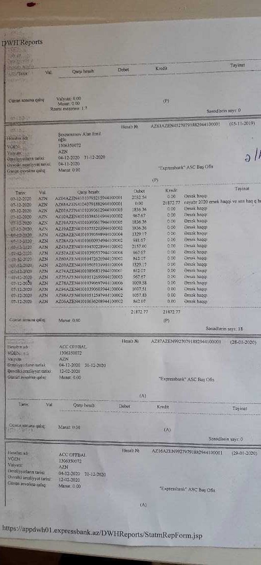 Şikayətçi Meydan TV-yə bildirib ki, onunla birgə səkkiz nəfər işçinin əməkhaqqı verilməyib. Səkkiz nəfərə ümumilikdə 5500 manat pul ödənilməlidir: "2013-cü ildən burada işləyirdim. Əmək müqaviləsinə əsasən, maaşın bir hissəsi karta köçürülürdü. Qalan əməkhaqqım isə gördüyüm işə görə müəyyən olunurdu. 2019-cu ildən etibarən əməkhaqqımız 168-dən 250 manata qalxdı. Yəni bu, karta köçürülən məbləğ idi. Gördüyüm işə görə pul isə paketdə təqdim olunurdu. Mən noyabr ayı üçün 820 manat pul işləmişəm. Mişarçıya 500, sürücü ilə fəhləyə hərəsinə 350 borcludurlar”.