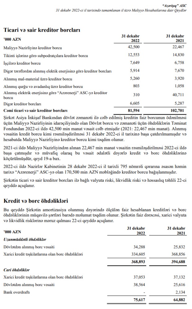 "Azərişıq” Açıq Səhmdar Cəmiyyətinin 31 dekabr 2022-ci il tarixində tamamlanan il üzrə Maliyyə Hesabatları və Müstəqil Auditorların Hesabatında belə deyilir.