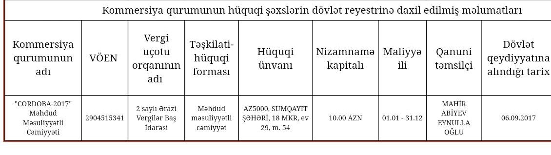 "CORDOBA-2017" Məhdud Məsuliyyətli Cəmiyyəti