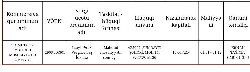 "Kometa-15" Məhdud Məsuliyyətli Cəmiyyəti