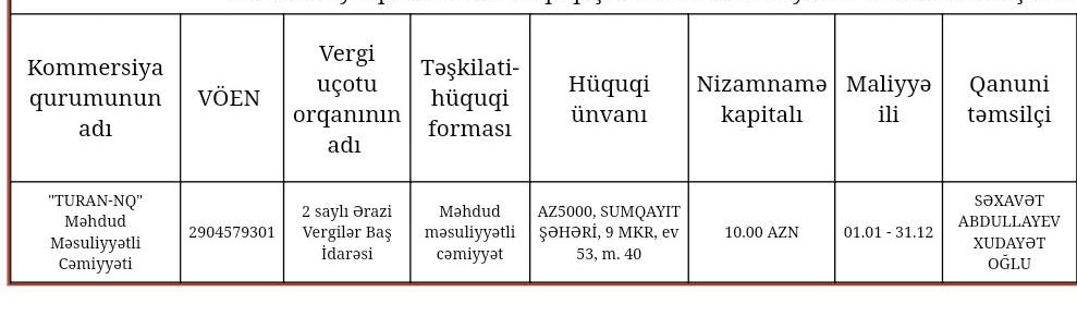 "TURAN-NQ" Məhdud Məsuliyyətli Cəmiyyəti