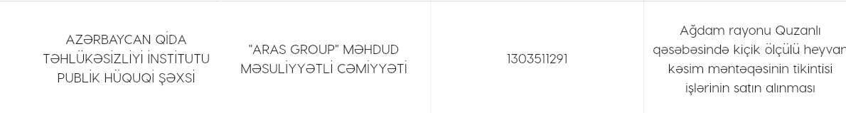 Burada maraqlı məqamlardan biri də qalib elan edilən şirkətlə - "Aras Group" MMC ilə bağlıdır.