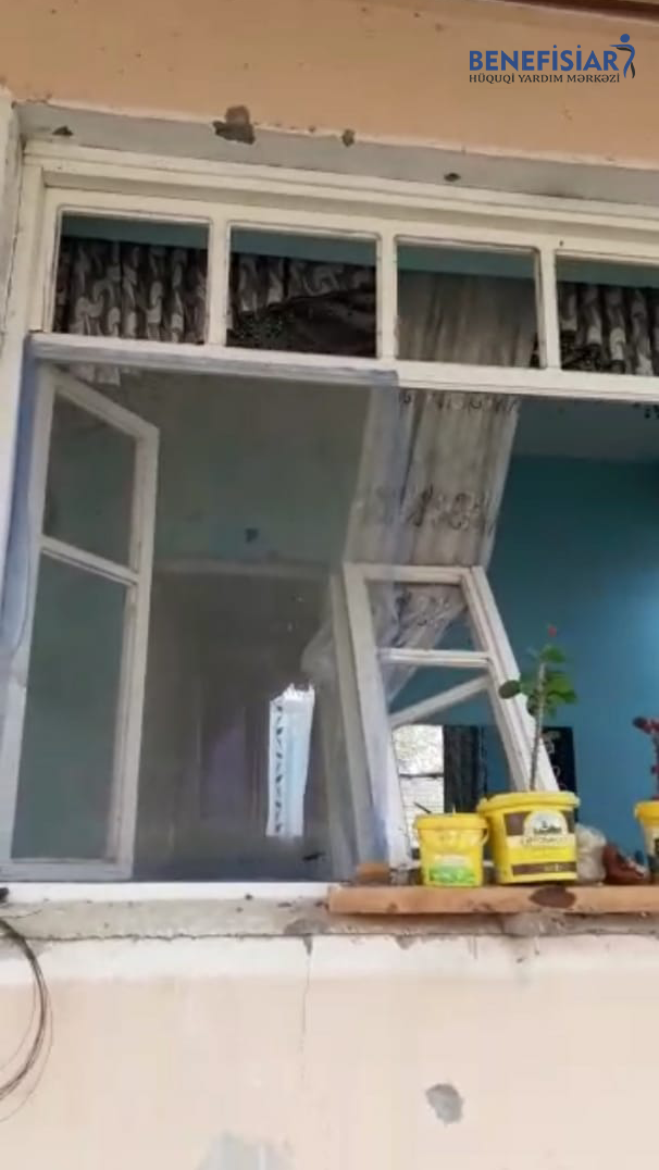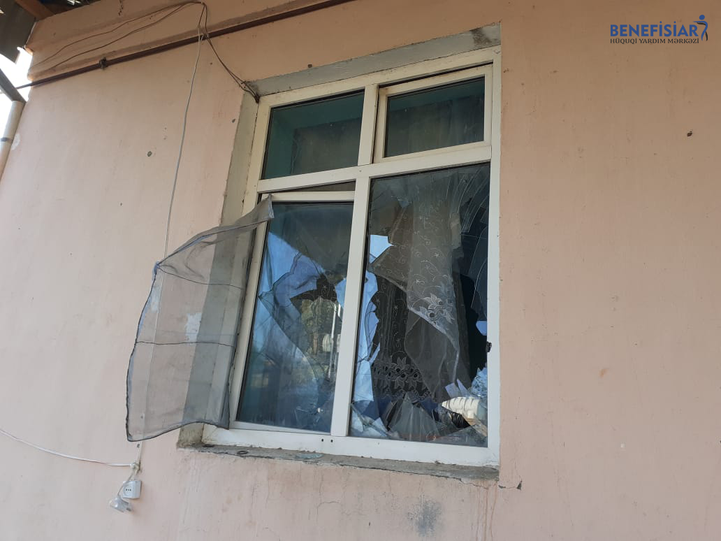 Hazırda ailə üzvləri ilə zərərçəkmiş evində yaşadığını deyən V. Cəfərov bildirdi ki, məcbur olub özləri evdə kiçik təmir işləri aparıblar ki, orda yaşaya bilsinlər: "Evin pəncərələr yararsız hala düşmüşdü. Özümüz düzəldib pəncərələrə "klyonka” vurduq ki, evdə yaşamaq mümkün olsun” .