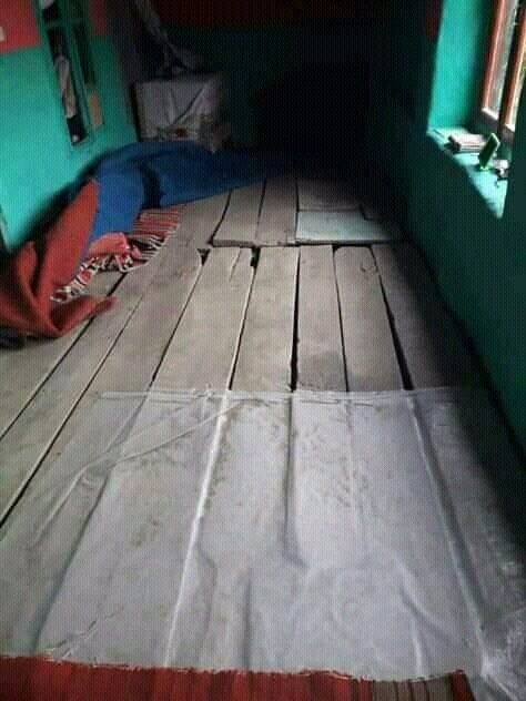 Qədir Qurbanovun evi 10 ildir ki, qəzalı vəziyyətdədir. O, ötən illər ərzində dəfələrlə Fövqəladə Hallar Nazirliyinə müraciət etdiyini, ancaq müraciətlərinin nəticəsiz qaldığını deyir: "Nazirliyin regional idarəsindən iki dəfə gəlib evə baxış keçirdilər, şəkillər çəkdilər, dedilər ki, kömək olunacaq, ancaq olunmadı. İcra hakimiyyəti bir az material verdi, ancaq bu evin təmir-bərpası üçün yetərli olmadı. Aldığım maaş dediyim kimi, nə yeməyə çatır, nə dərmanlarıma… Yayda qurbağaların, ilanların qorxusu canımıza hopur. Su yox, yanacaq yox… Üç azyaşlı balam yağış başlarına yağa-yağa böyüyür. Nəmişlikdən, şəraitsizlikdən hər cür xəstəlik keçiriblər”.