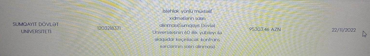 Sifarişçi olduğu tenderin predmetlərinə diqqət etdikdə əminliklə demək olar ki, Prezidentin çıxışının ziddinə gedən, büdcə vəsaitlərini havaya sovuran təşkilatlardan biri də Sumqayıt Dövlət Universitetidir.