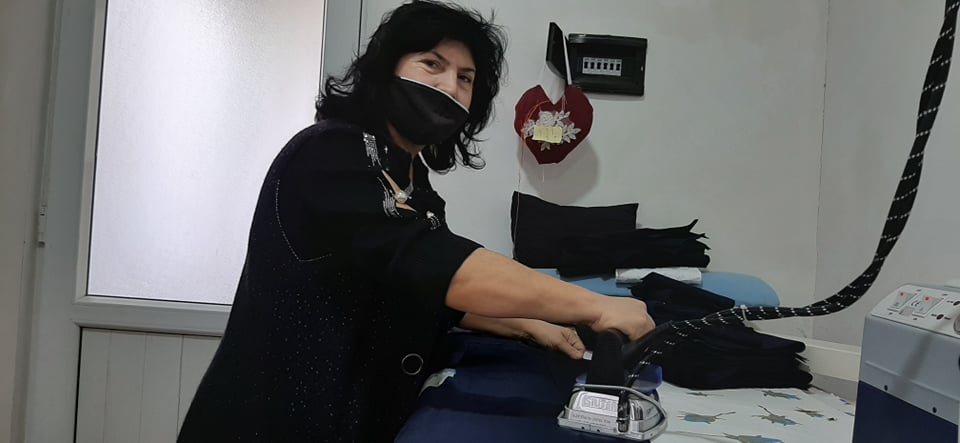 Atelye sahibi burdakı tikiş maşınlarını sayır. Təlim başa çatandan sonra ABŞ təşkilatı ona 6 tikiş maşını, xüsusi buxar ütüsü və başqa ləvazimatlar verib.