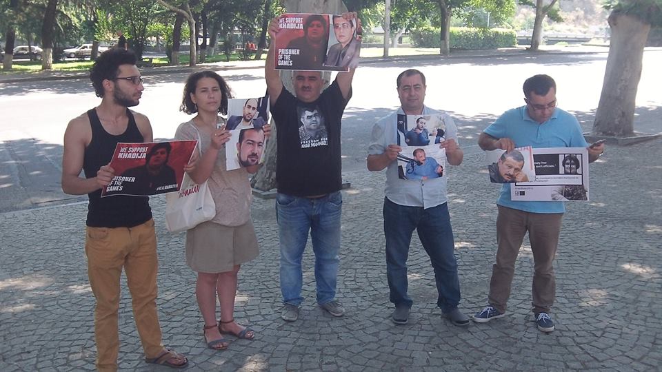 Milli Mətbuat günündə Tbilisidə azərbaycanlı fəllar səfirliyimızın önündə "Həbsdəki jurnalistlərə azadlıq!" şuarı ilə aksiya keciriblər.