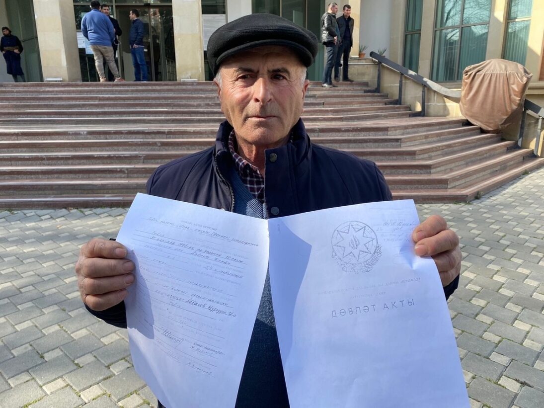 "Düzü, yuxarı instansiya məhkəməsinə şikayət etməyə heç imkanım, pulum da yoxdur. Ali Məhkəməyə şikayət etmək üçün gərək vəkil tutasan, gedib-gələsən. Buna da imkan çatmır. Üstəlik, məhkəmənin ədalətinə də inamım itdi. Əlimdə bu qədər sənəd – dövlət aktı, şəhadətnamə, o yerin xəritəsi ola-ola əleyhimə qərar verildi. Səbəb də sadədir, çünki mən adi vətəndaşam, qarşı tərəf haqsız da olsa, onların sözü keçir. Torpağın sənədinin əsli arxiv idarəsindədir, onu yoxa çıxarıblar. Guya o sənəd olmadığına görə yeri təyin etmək mümkün olmayıb. Bu torpaq başqa ölkənin ərazisində deyil ki. Azərbaycanda, Tovuzda yeri təyin eləmək bu qədər çətin işdir?”